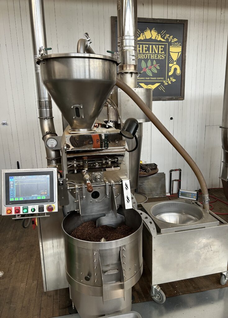 “One of our two Loring Smart Roasters in action at our roastery in the Portland neighborhood. Coffee ignites the many connections made at Heine Bros, and it all starts here.”